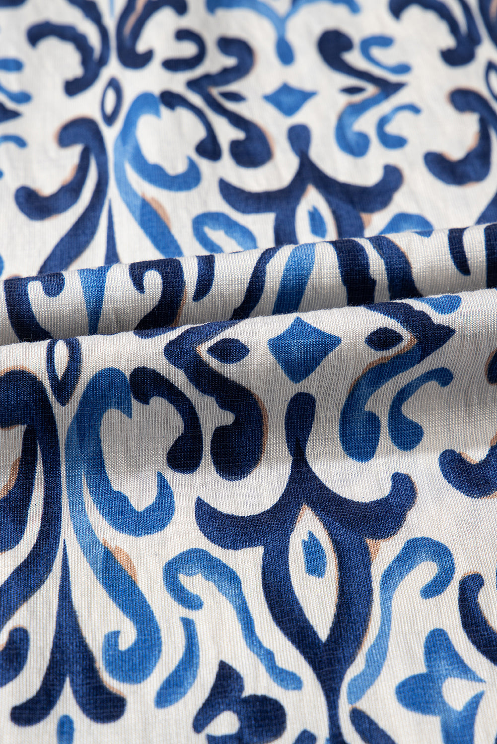 Abstract Boho Smocked Bodice High-Waist Maxi Dress
