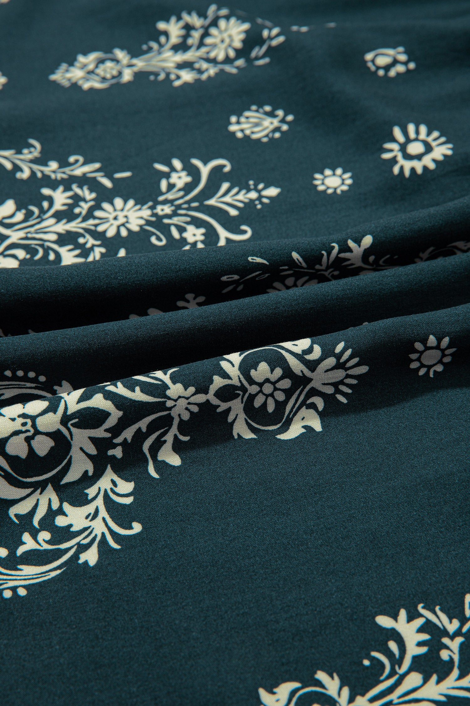 Boho Floral Lettuce Trim 3/4 Sleeve Mini Dress
