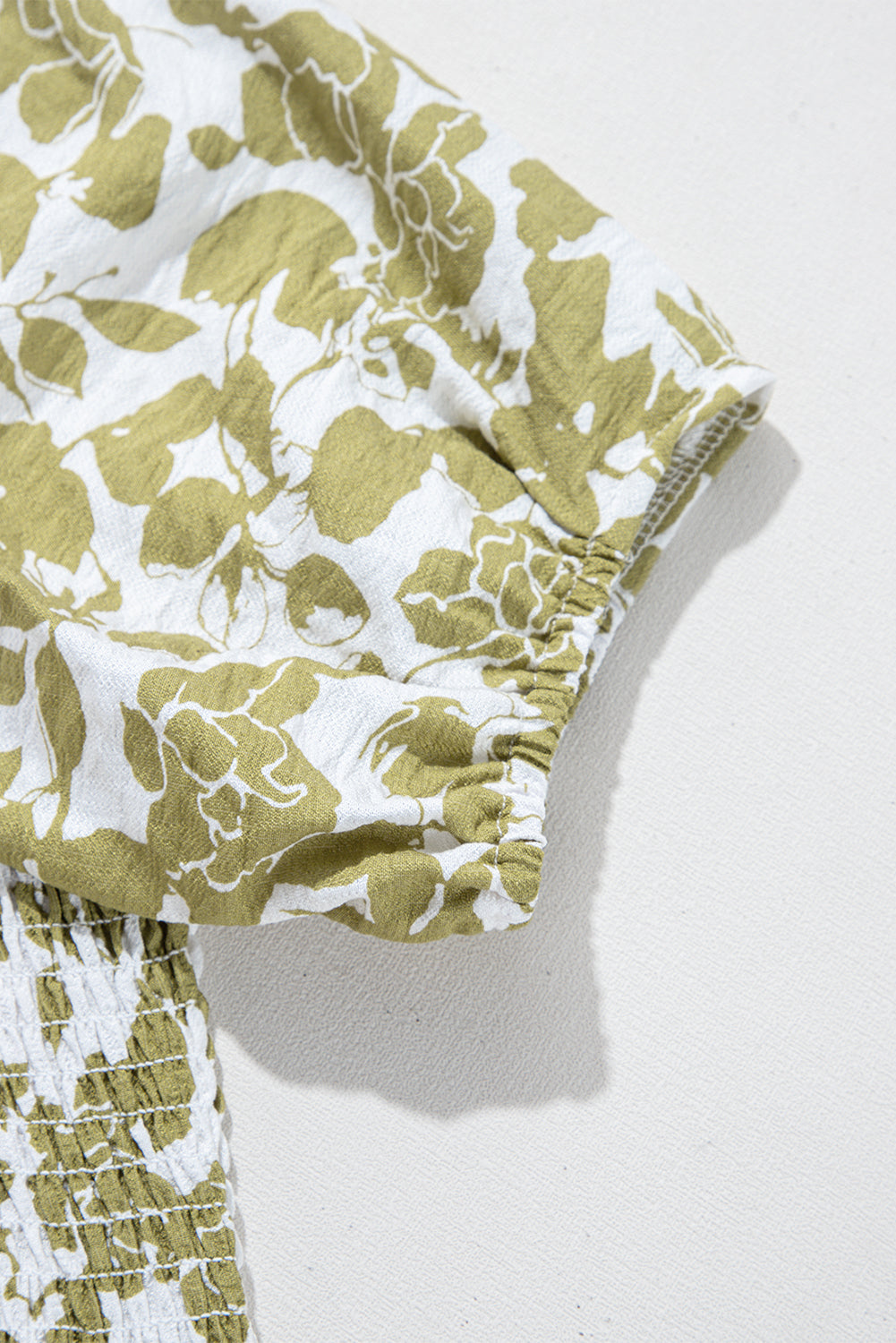 Boho Floral Smocked Square Neck Puff Sleeve Dress